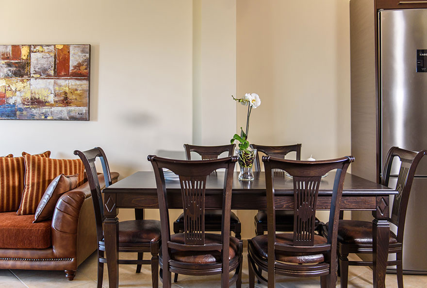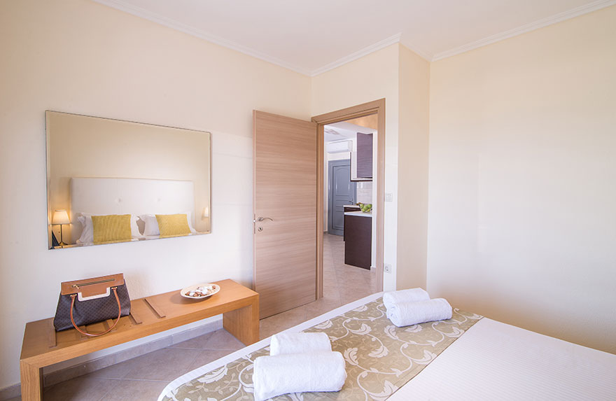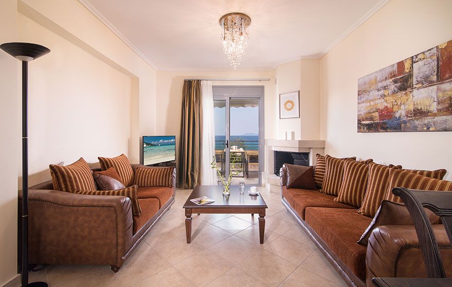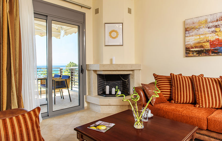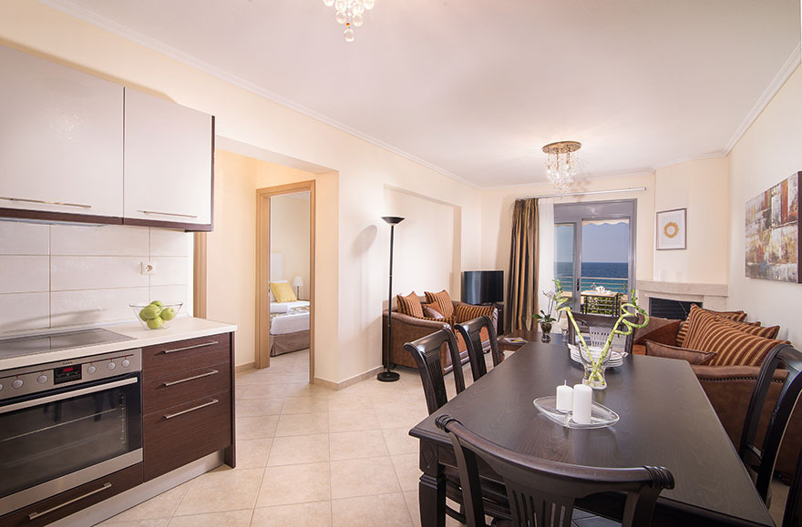 Сьют состоит из двух спален, гостиной, большой и полностью оборудованной кухни и ванной комнаты с ванной. С персональной меблированной веранды открывается панорамный вид на Эгейское море.